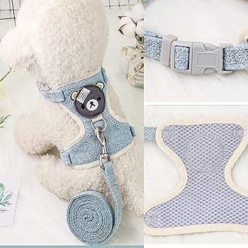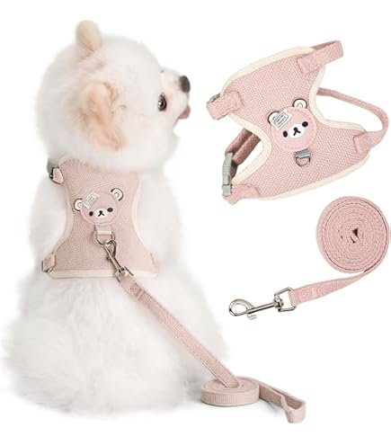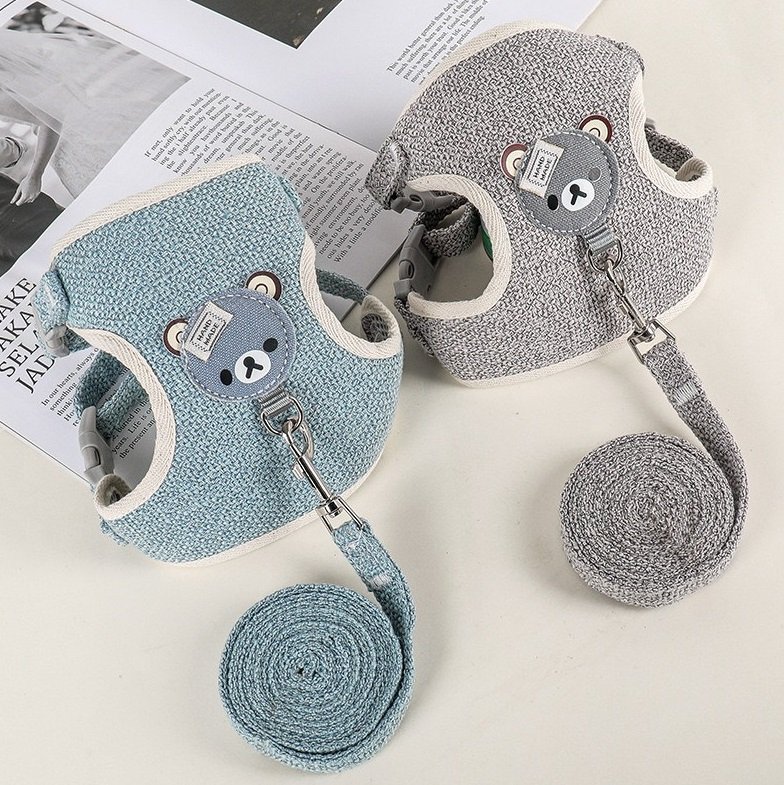 Arnés chaleco con traílla, diseño de osito, cómodo y seguro para paseos sin tirones.