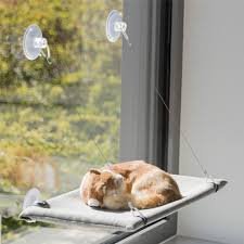 Cama colgante para ventana con ventosas resistentes, ideal para que tu gato descanse, tome el sol y disfrute de la vista.