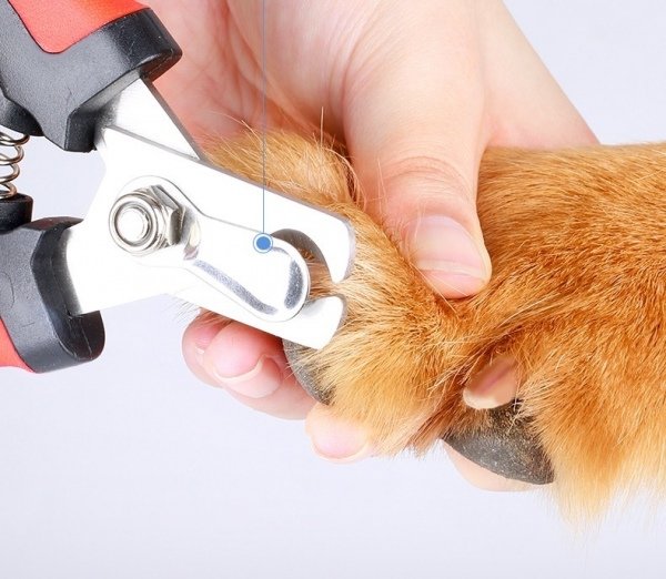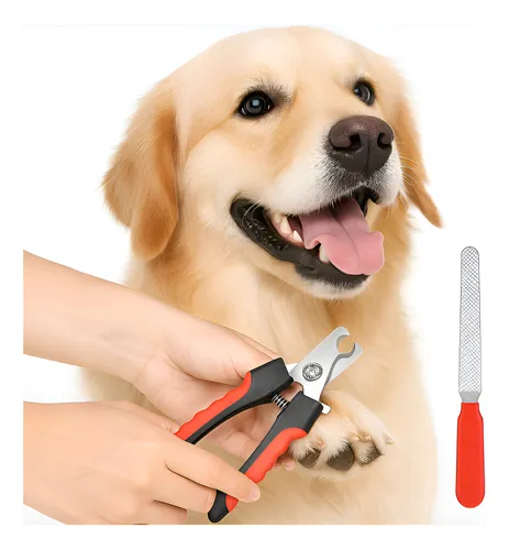 Cortaúñas tipo alicate con mango ergonómico y lima incluida, ideal para el cuidado de uñas de perros y gatos.