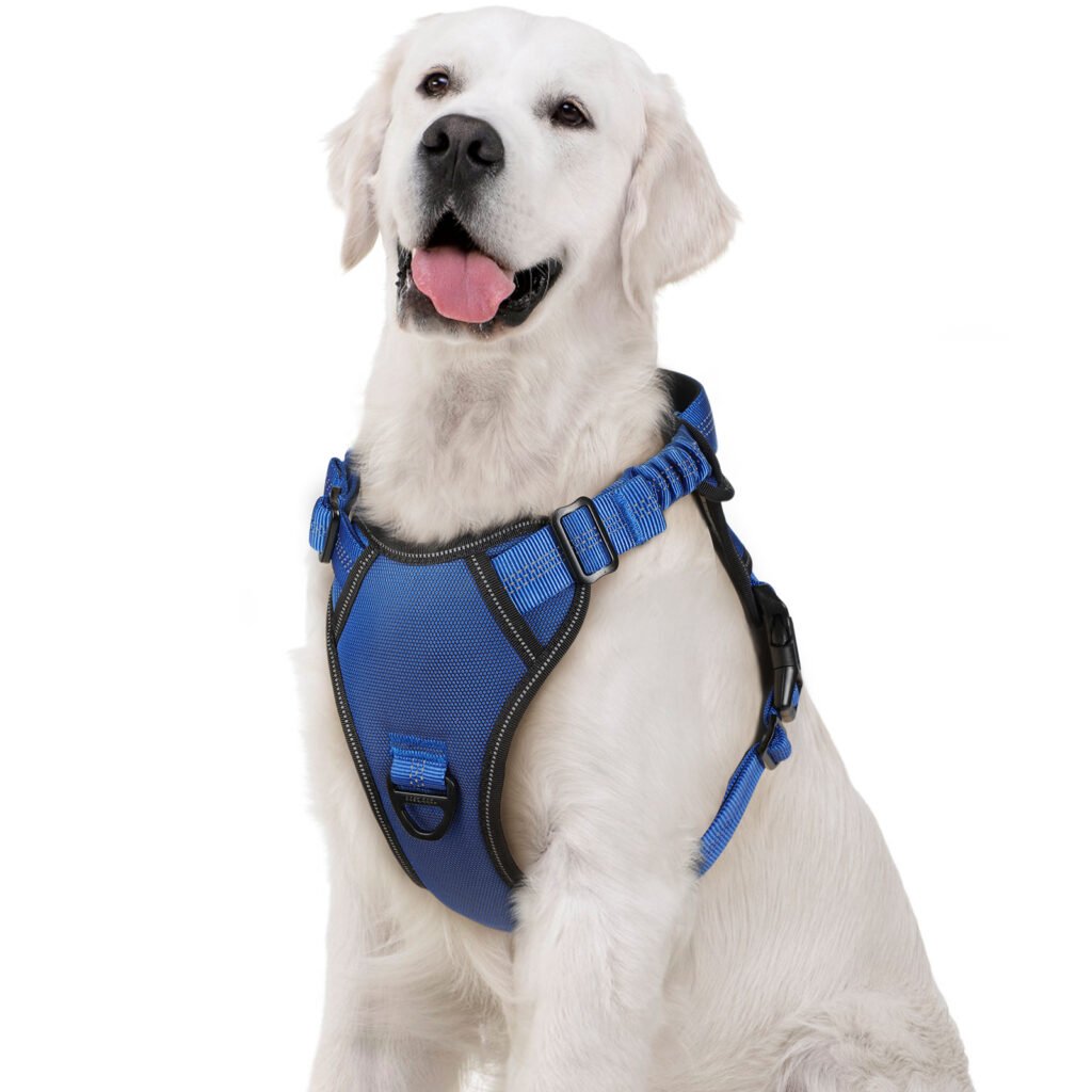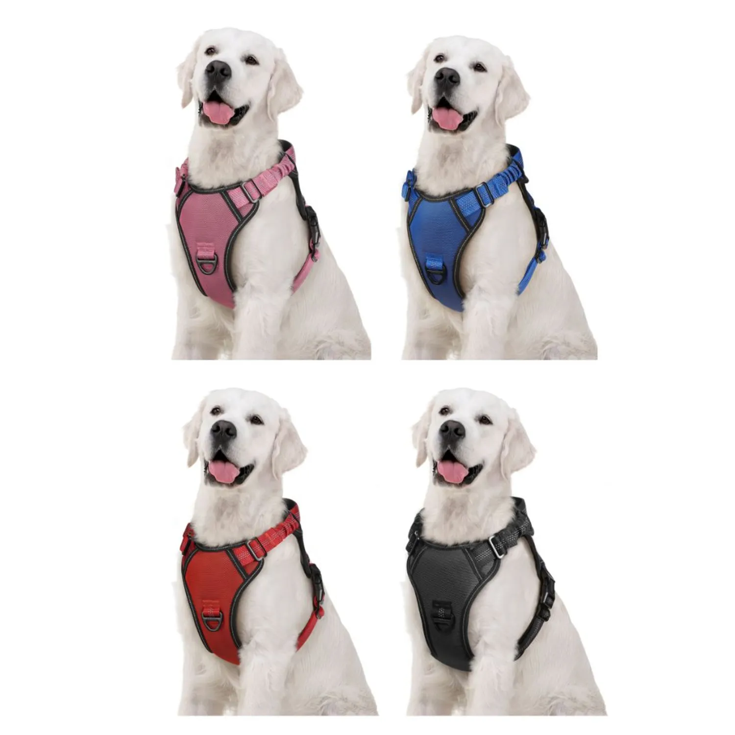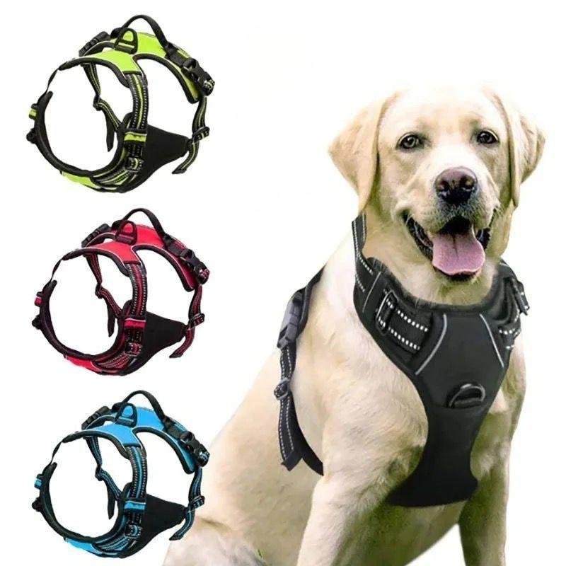 Pechera ergonómica con absorción de impactos, impermeable y anti-tirones, ideal para perros medianos y grandes.