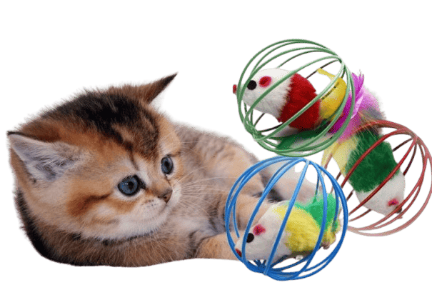 Pelota metálica con ratón de felpa y plumas en el interior, perfecta para estimular el instinto cazador de tu gato.