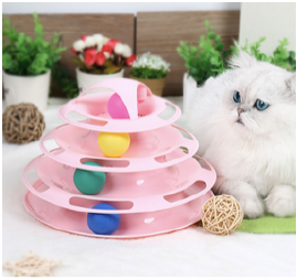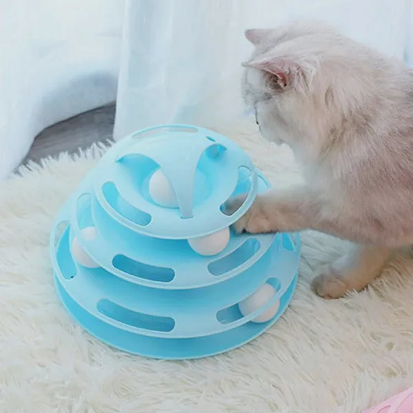 Placa giratoria de 4 niveles con pelotas de colores y resorte, perfecta para mantener a tu gato activo y entretenido.