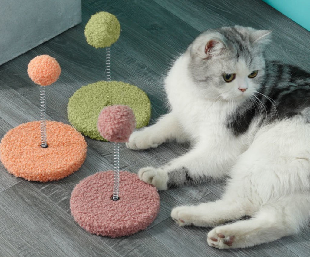 Juguete interactivo con resorte y pelota, perfecto para estimular la actividad y el instinto cazador de tu gato.