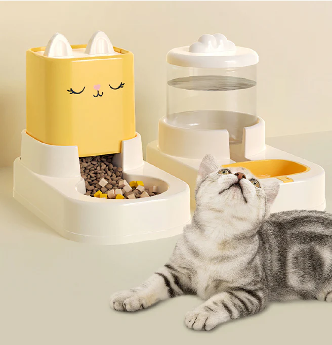 Set comedero y bebedero automático Cute Cat, práctico y adorable, ideal para mantener a tu gato alimentado e hidratado.